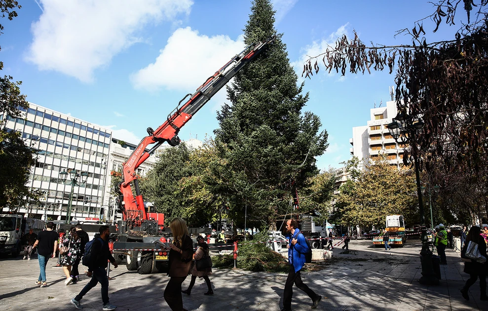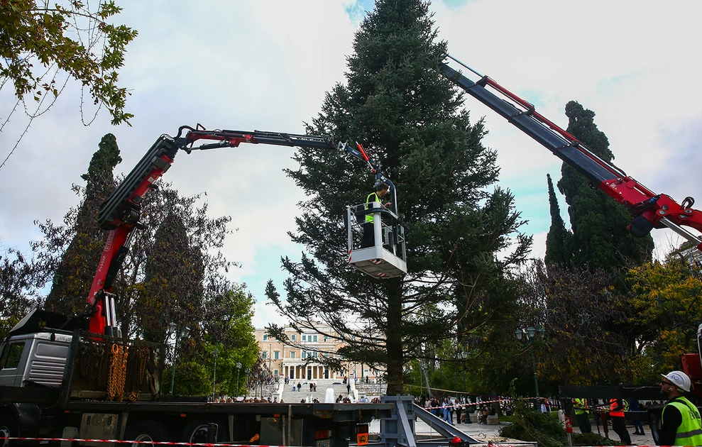 Λίγο πριν τις 8 το πρωί της Παρασκευής 21 Νοεμβρίου, στην πλατεία Συντάγματος έφτασε ένα εντυπωσιακό έλατο ύψους 19 μέτρων, προερχόμενο από τη Βυτίνα Αρκαδίας.