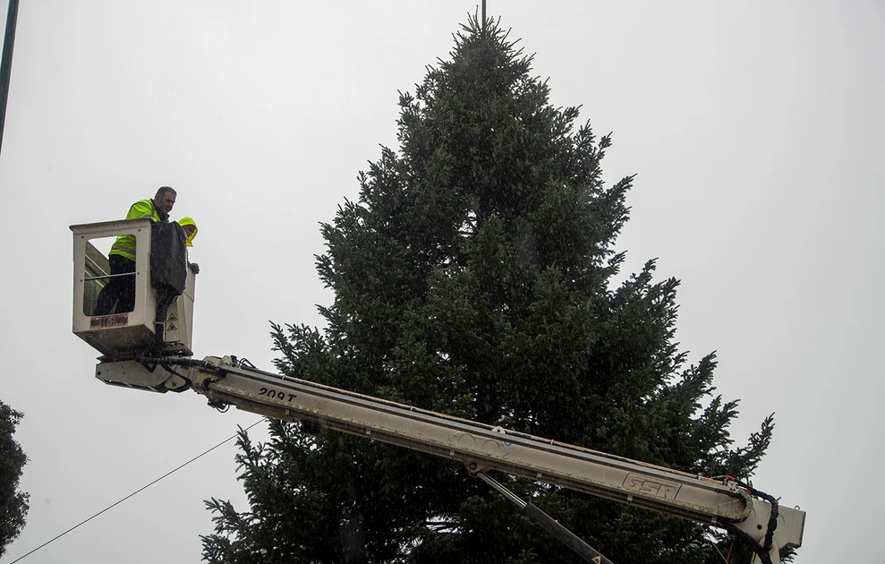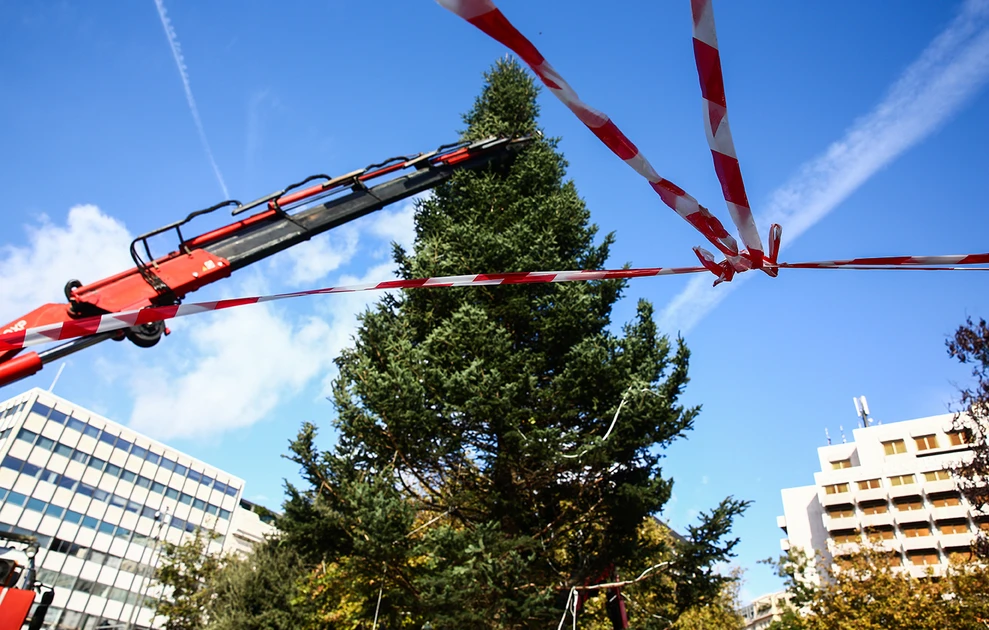 Το δέντρο τοποθετήθηκε ήδη στο κεντρικό σημείο και θα φωταγωγηθεί επίσημα στις 27 Νοεμβρίου, σε μια εκδήλωση που αναμένεται να προσελκύσει πλήθος κόσμου.