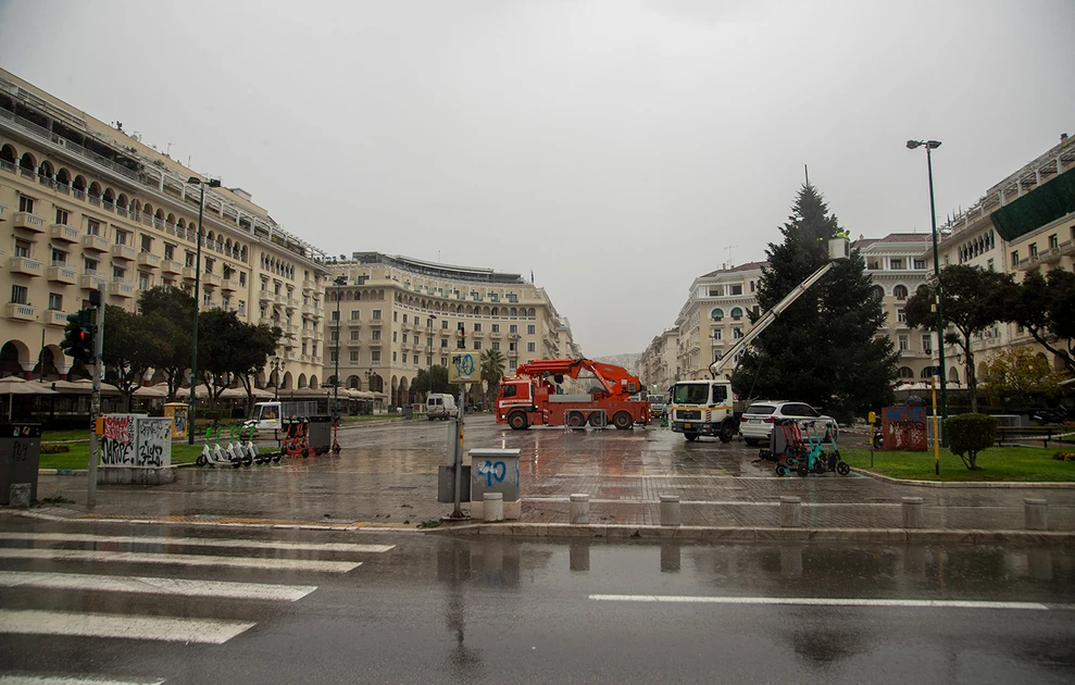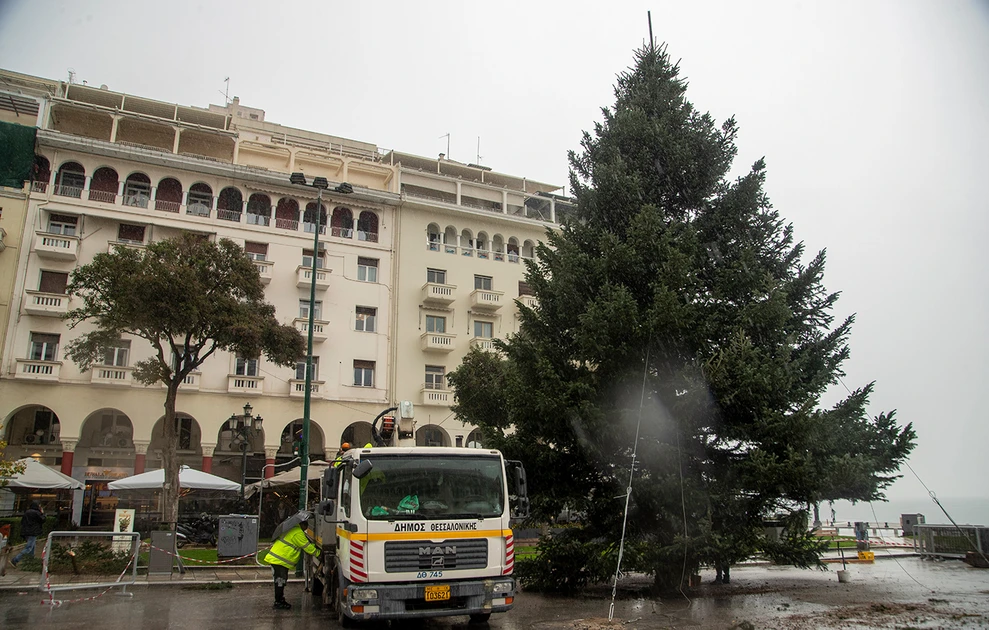 Το χριστουγεννιάτικο δέντρο της Θεσσαλονίκης βρίσκεται ήδη στη πλατεία Αριστοτέλους. Ήρθε από το Παλαιοχώρι Χαλκιδικής, έχει ύψος 18 μέτρων και εντυπωσιακή διάμετρο περίπου 8 μέτρων.